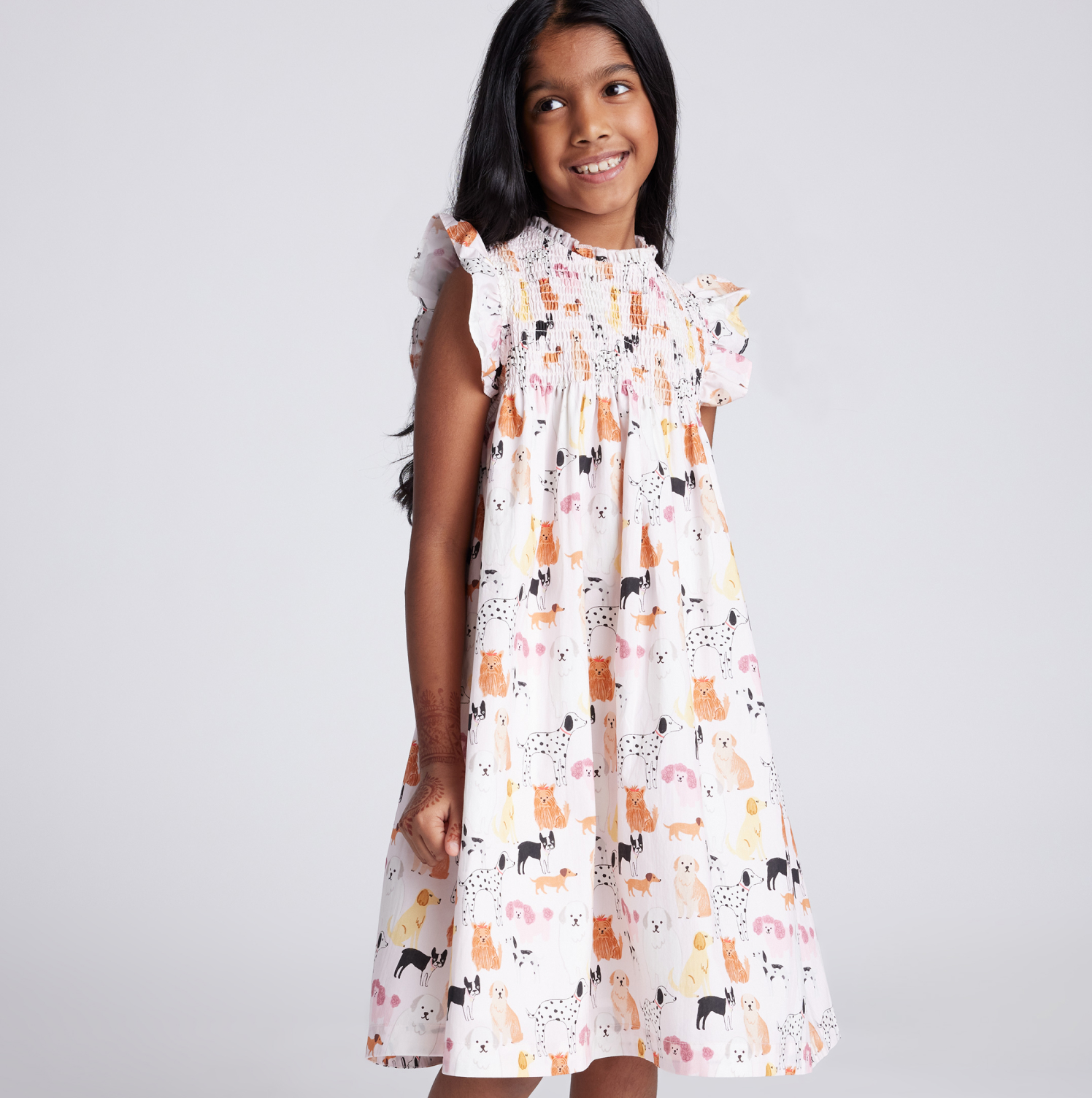 100% Organic Cotton Poplin Smocked Flutter Sleeve Dress