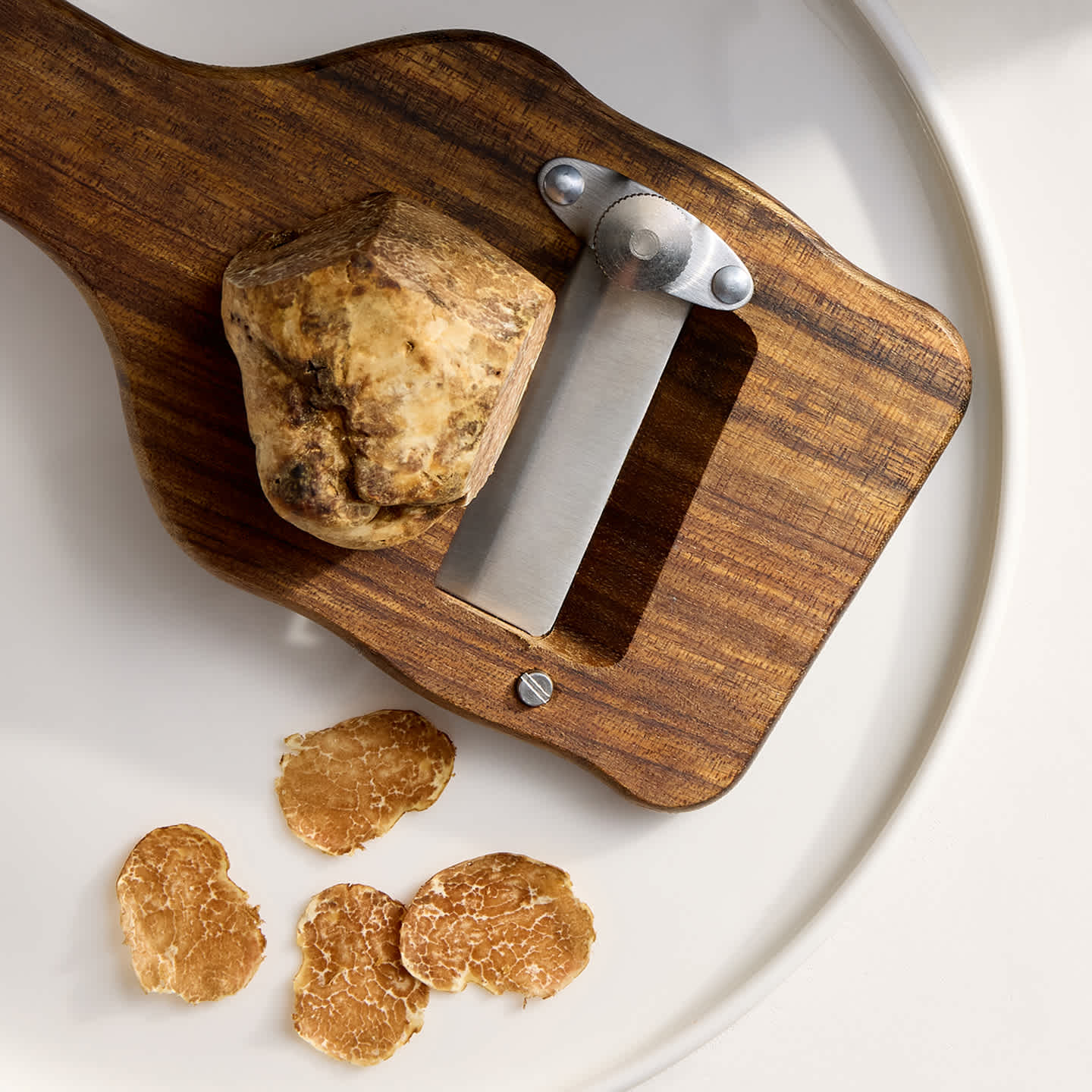 Each order includes fresh White Alba Truffles totaling the weight you selected, along with a complimentary wooden truffle shaver for perfect, paper-thin slices.