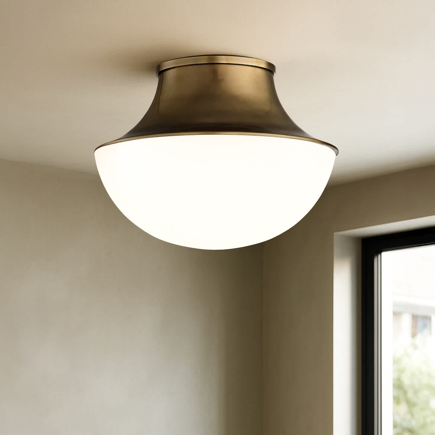 Add understated sophistication to any room with this elegant flush mount fixture. Crafted from durable spun steel, it features a sleek silhouette available in brass and dark bronze to match a range of interior styles. The matte opal glass shade provides soft, even illumination, making it ideal for hallways, kitchens, and entryways.