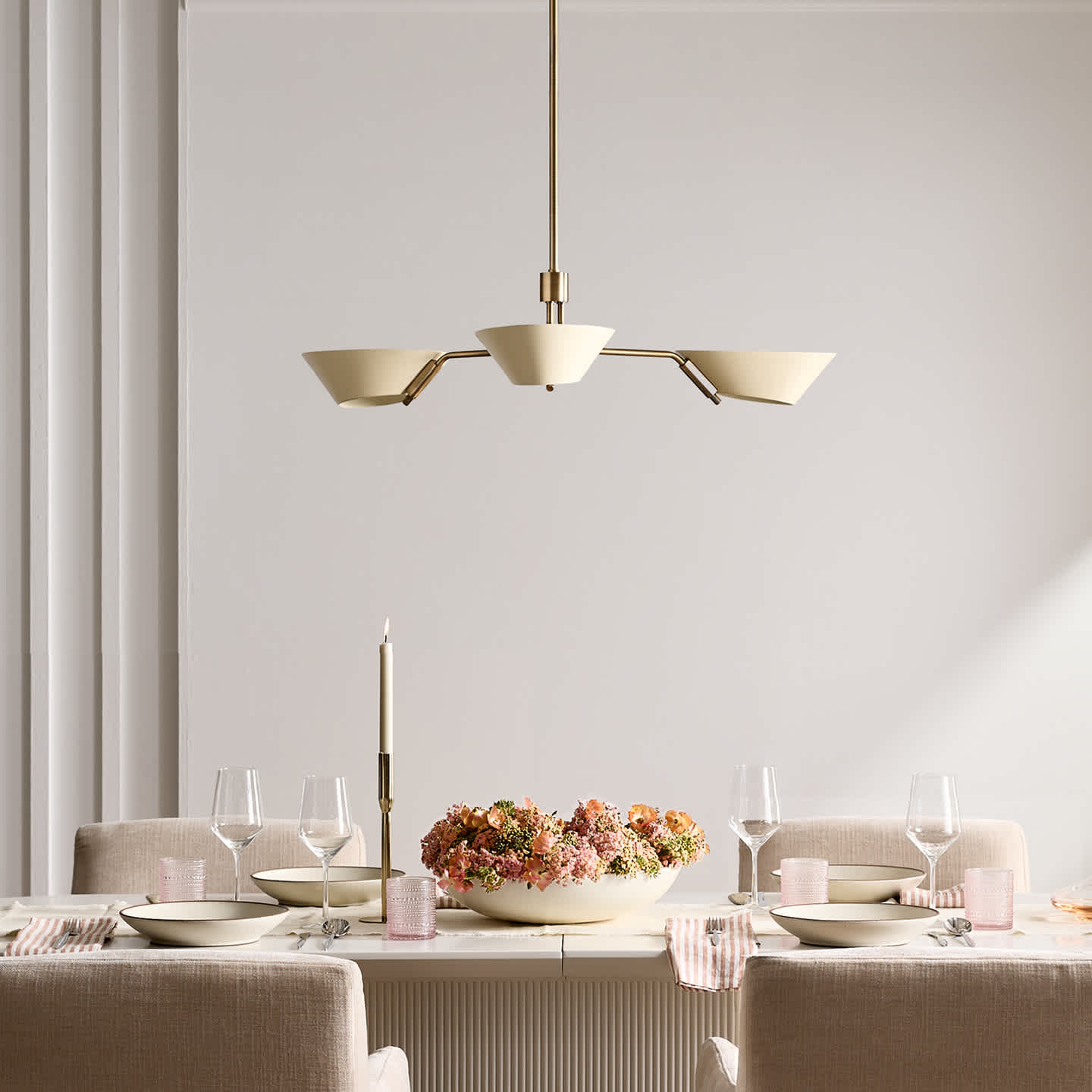 The mid-century armed iron chandelier adds a touch of modern to your space with its sculptural arms and patina brass finish. Iron shades in your choice of two matte finishes help to diffuse the light upwards, creating a warm and inviting glow. Perfect for dining rooms, living rooms, and covered outdoor spaces, this chandelier makes a timeless statement in your home.