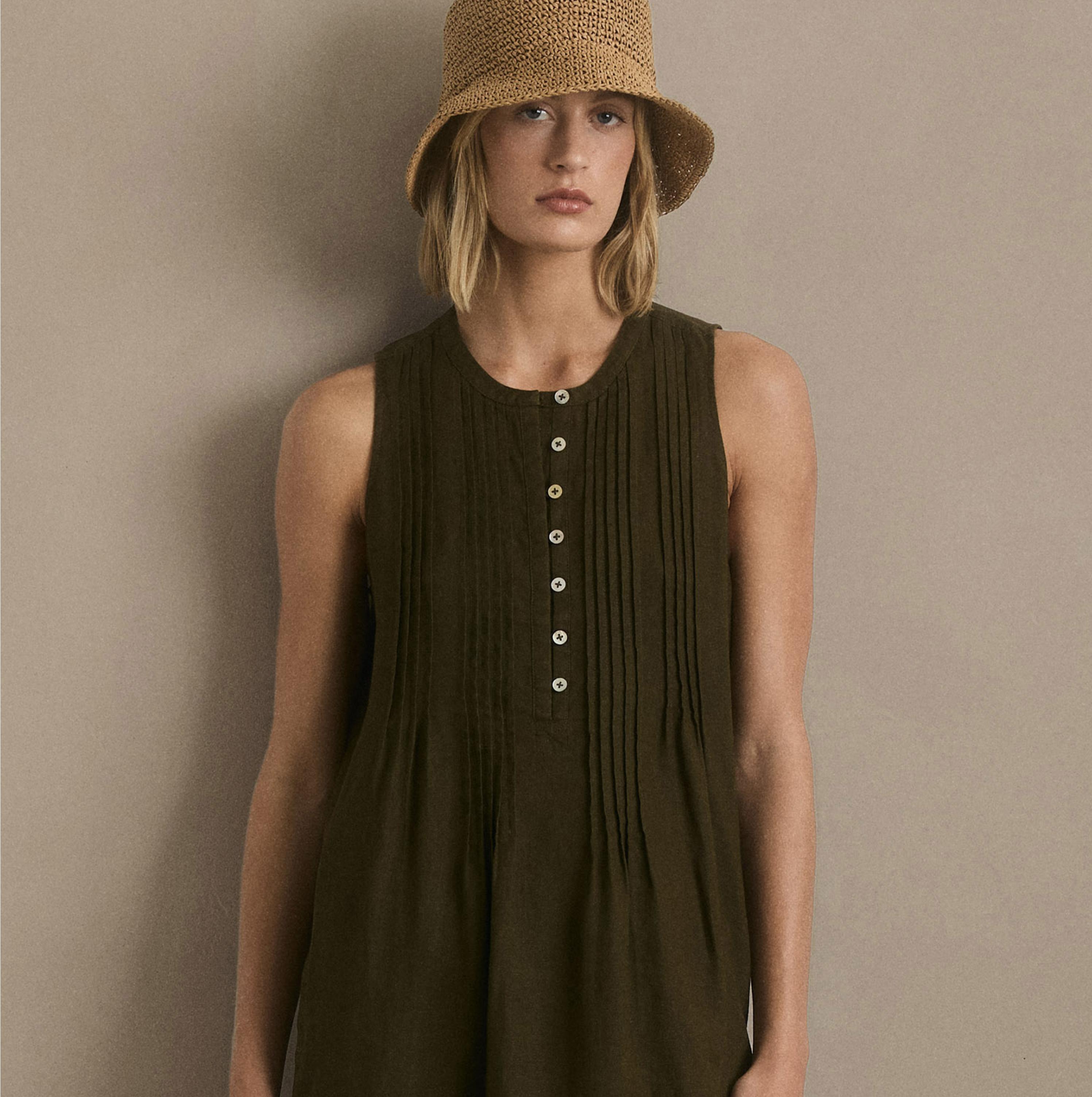 100% European Linen Scoop Neck Midi Dress
